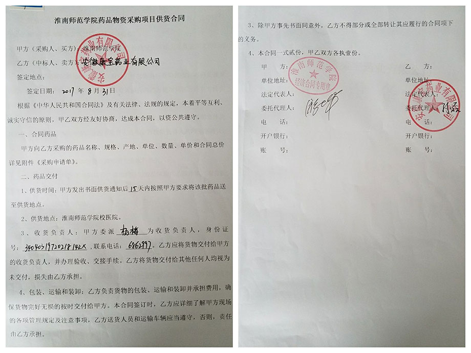 近日,康寶藥業在 “淮南師范學院后勤物資采購供貨商入庫單位遴選”項目中一舉中標,并正式與淮南師范學院簽訂合作協議。