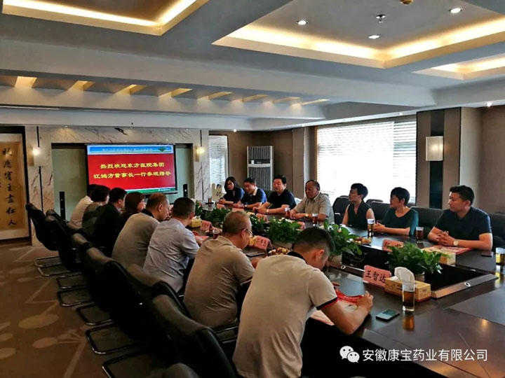 實地參觀之后,雙方進行了廣泛深入的溝通交流。談話中,江董事長就東方醫院集團及康寶藥業的發展狀況進行了詳細的介紹,并強調康寶藥業是東方醫院集團唯一藥品供應單位。會上,雙方就如何深入合作交換了意見,達成了共識。